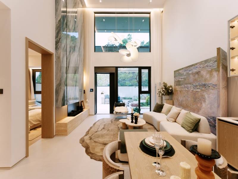 居住空间的设计充分考虑了现代家庭的生活需求。退台式的设计让室内空间充满阳光,宽敞的庭院和露台为家庭生活增添了更多可能性。这些空间不仅是孩子们的游戏场所,也是老人们休憩的理想之地,更是全家人共享天伦之乐的最佳选择。一位业主描述道:"在这里,我们真正体会到了品质生活的含义。"